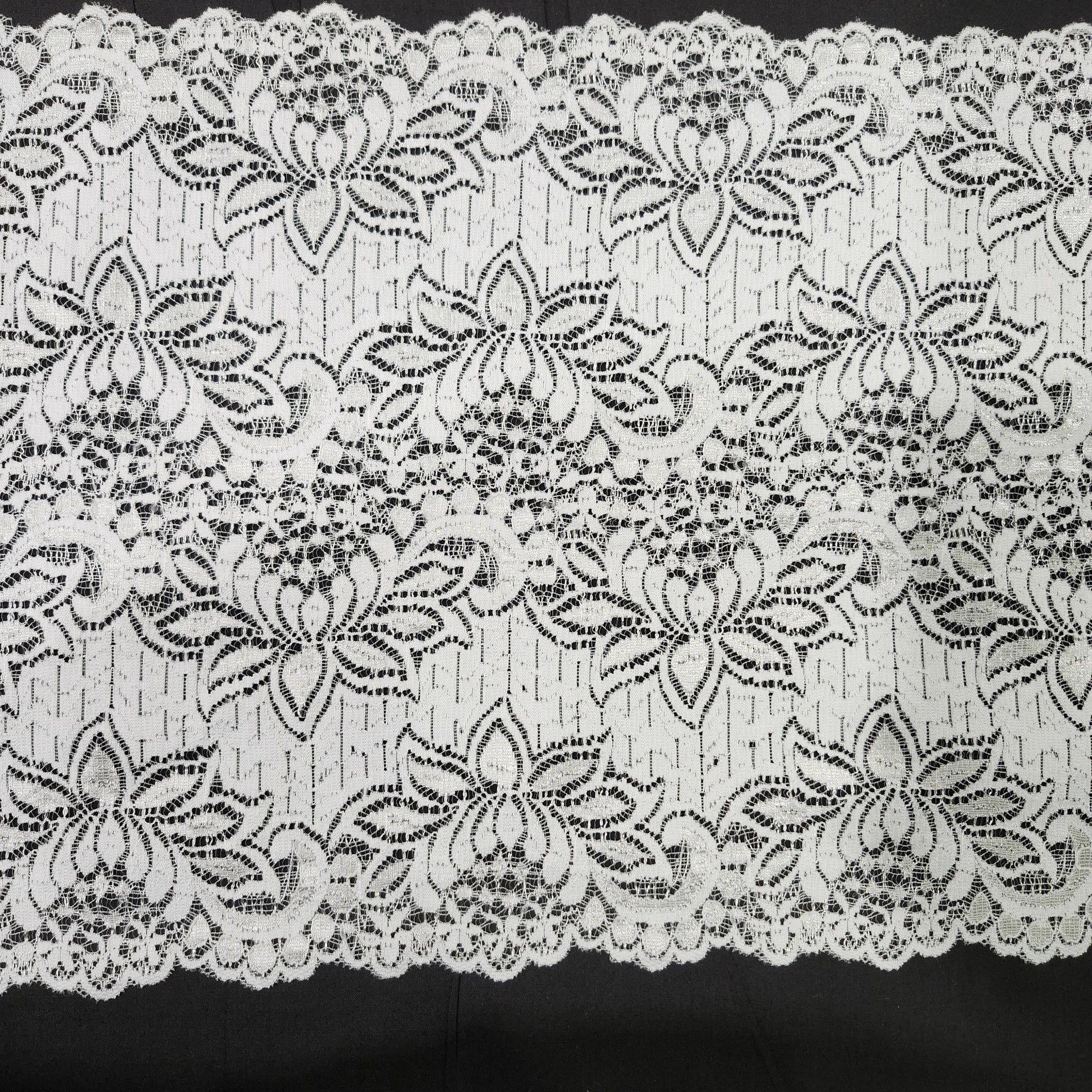 This pretty wide lace is great for tops, dresses, gowns, skirts and other uses.